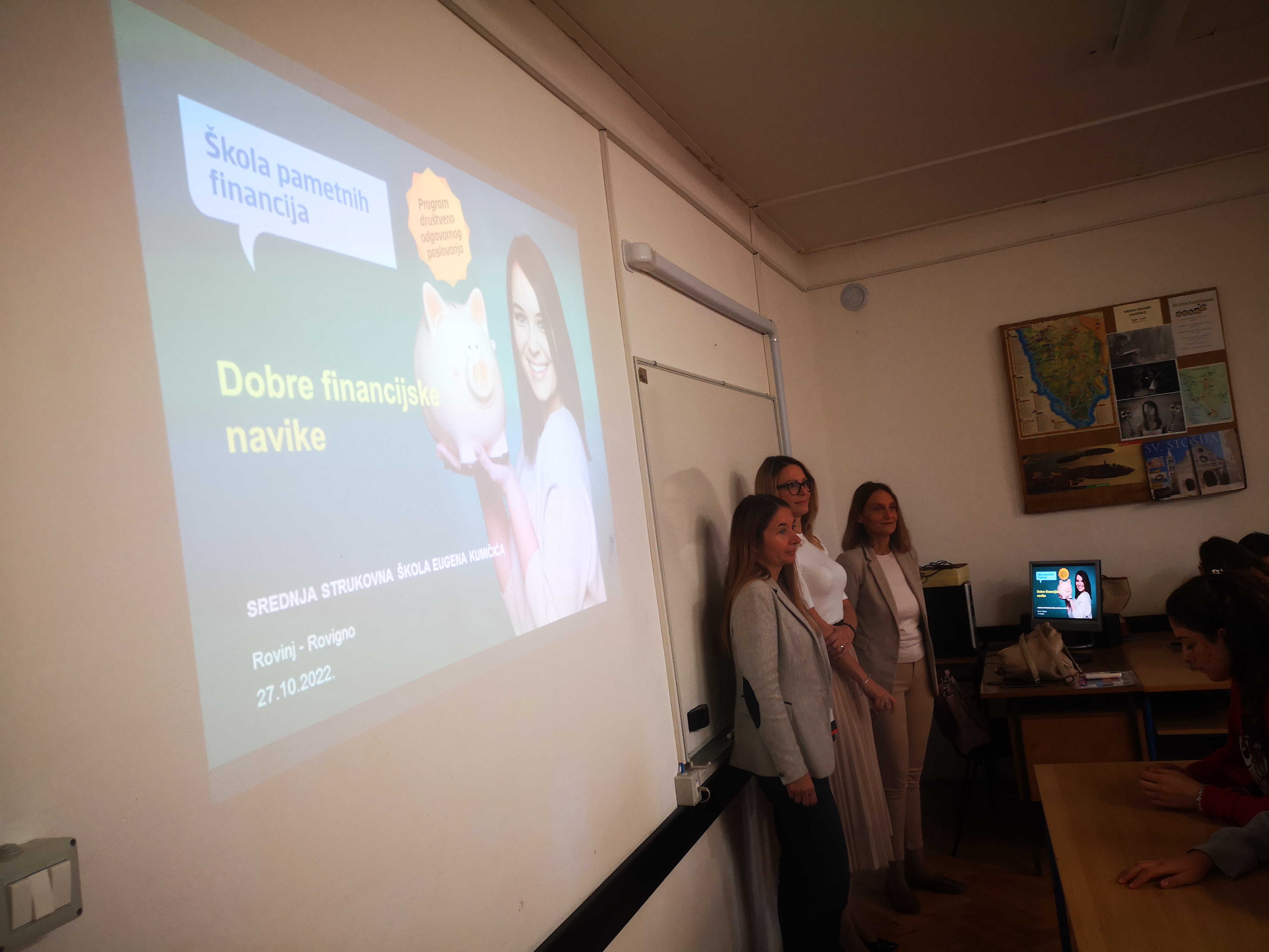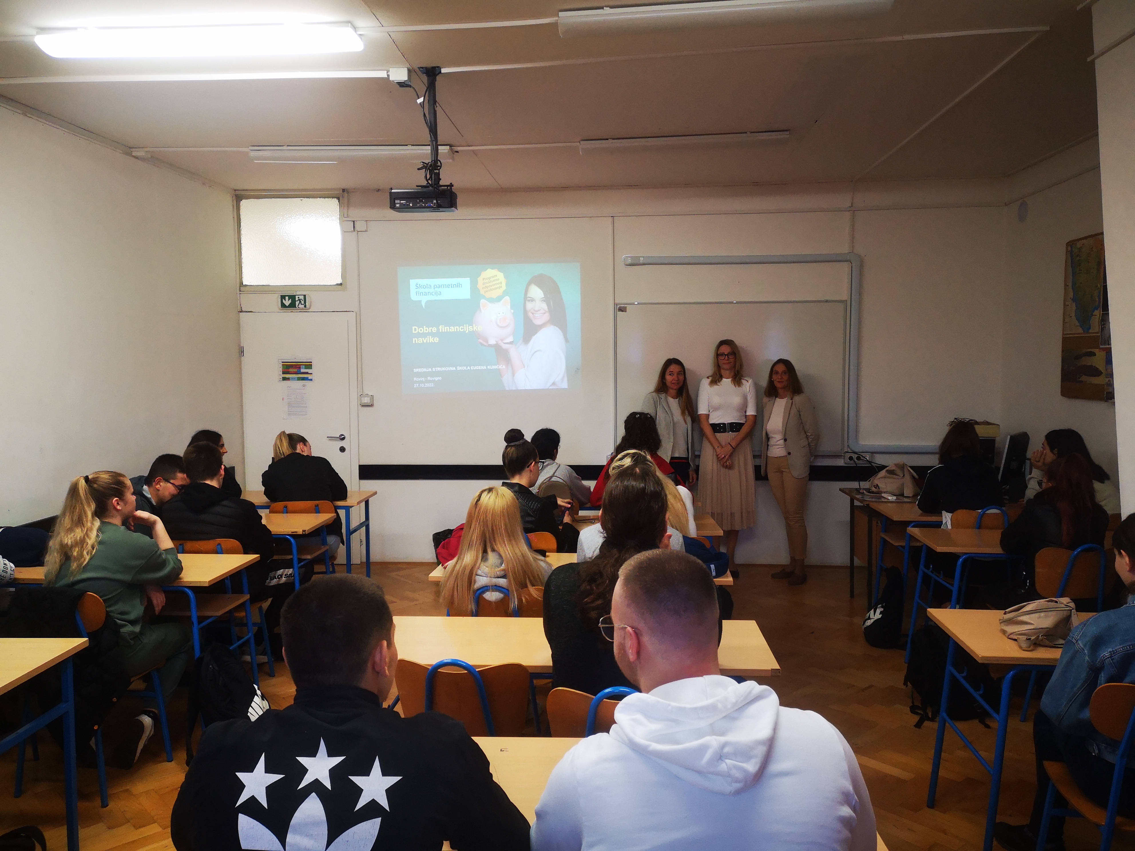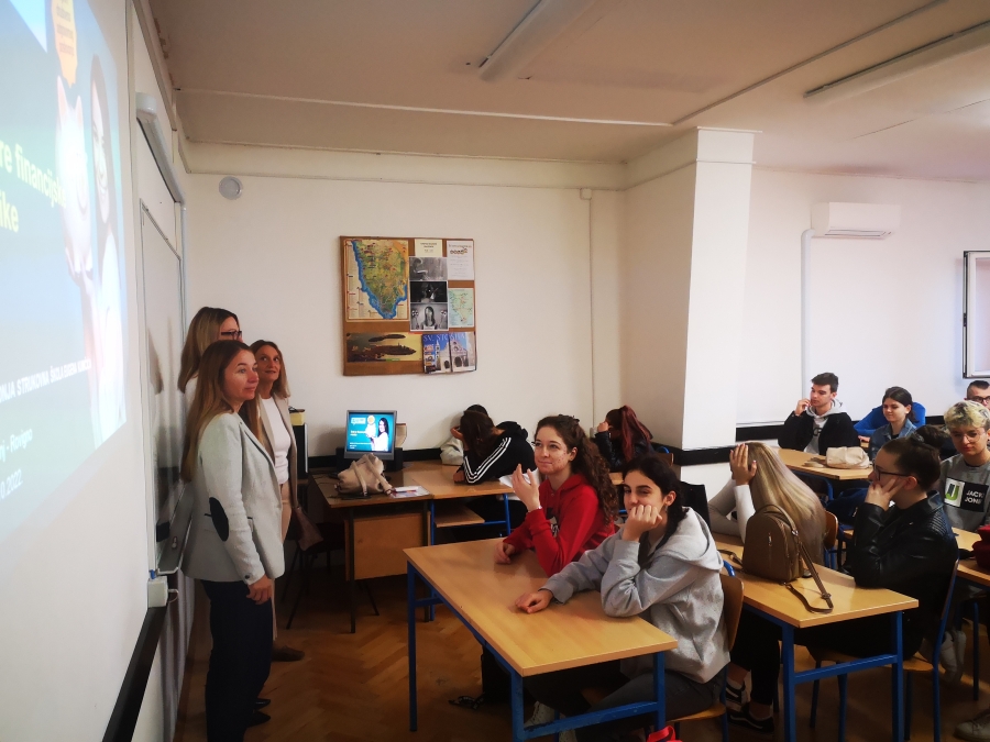 Dana 27. listopada 2022. godine učenici 3. c i 4. c razreda, u organizaciji profesorica Slađane Jančić i Cinzie Banko, prisustvovali su radionici "Škola pametnih financija - Ususret EURU" koju je održala gđa. Barbara Andrić iz Erste banke.Tema radionice bila je financijska pismenost. Predavačica je učenicima predstavila 5 osnovnih koraka za uspješno upravljanje osobnim financijama. Poseban osvrt dan je proceduri uvođenja EURA kao službene valute u Republici Hrvatskoj. Učenici su saznali pojedinosti o dvojnom iskazivanju cijena, fiksnom tečaju konverzije, vremenskom tijeku aktivnosti povezan s uvođenjem EURA u sustav Republike Hrvatske i općenito o prilagodbama gospodarstva i društva.