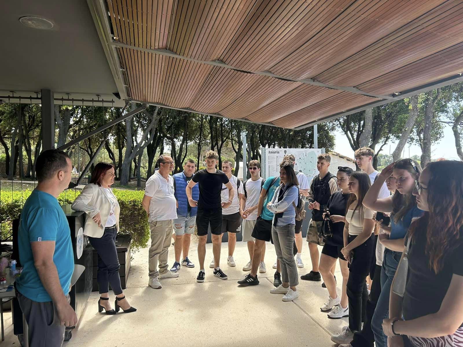 Učenici 3.c razreda (smjer Turističko-hotelijerski komercijalist) u pratnji profesorice Cinzie Banko i Slađane Jančić proveli su Projektni dan škole na terenskoj nastavi u Turističkom naselju i kampu Amarin, gdje su se upoznali s poslovanjem svih odjela Amarina i imali su priliku i sami biti u ulozi gosta. Na početku ih je dočekala zakuska i ugodna degustacija na terasi pansionskog restorana s pogledom na Rovinj. Direktorica Martina zajedno sa svojim djelatnicima upoznala nas je sa kapitalnim investicijama (između ostalog, budućim bazenskim kompleksom i popratnim otvorenim i zatvorenim sadržajima) i ciljem dugoročno održivog turizma i prvog kampa u Rovinju koji će biti otvoren kroz cijelu godinu. Naš je posjet imao za cilj približiti učenicima mogućnosti cijelogodišnjeg zapošljavanja i čari rada u turizmu, a sudeći po reakcijama učenika čini se da smo u tome i uspjeli. Radujemo se sljedećem posjetu kad ćemo imati priliku iskušati nove turističke izazove Kampa Amarin.
