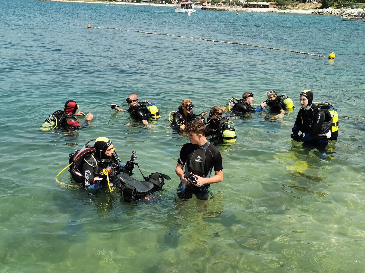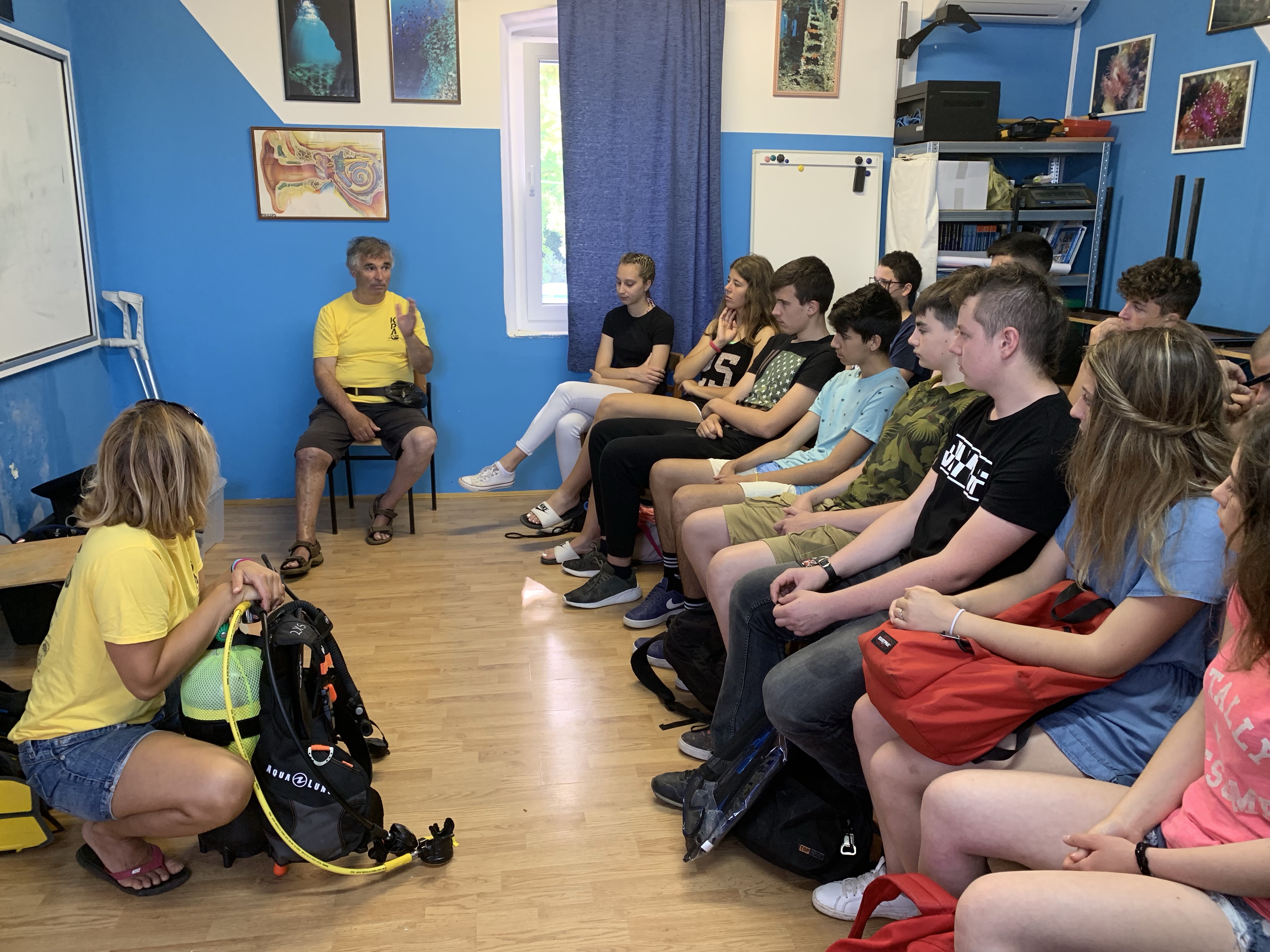 Nakon uvodne radionice, na kojoj su se učenici upoznali s ronilačkom opremom, komunikacijom, pravilima ponašanja i disanjem u vodi, slijedili su probni zaroni uz pratnju instruktora.
