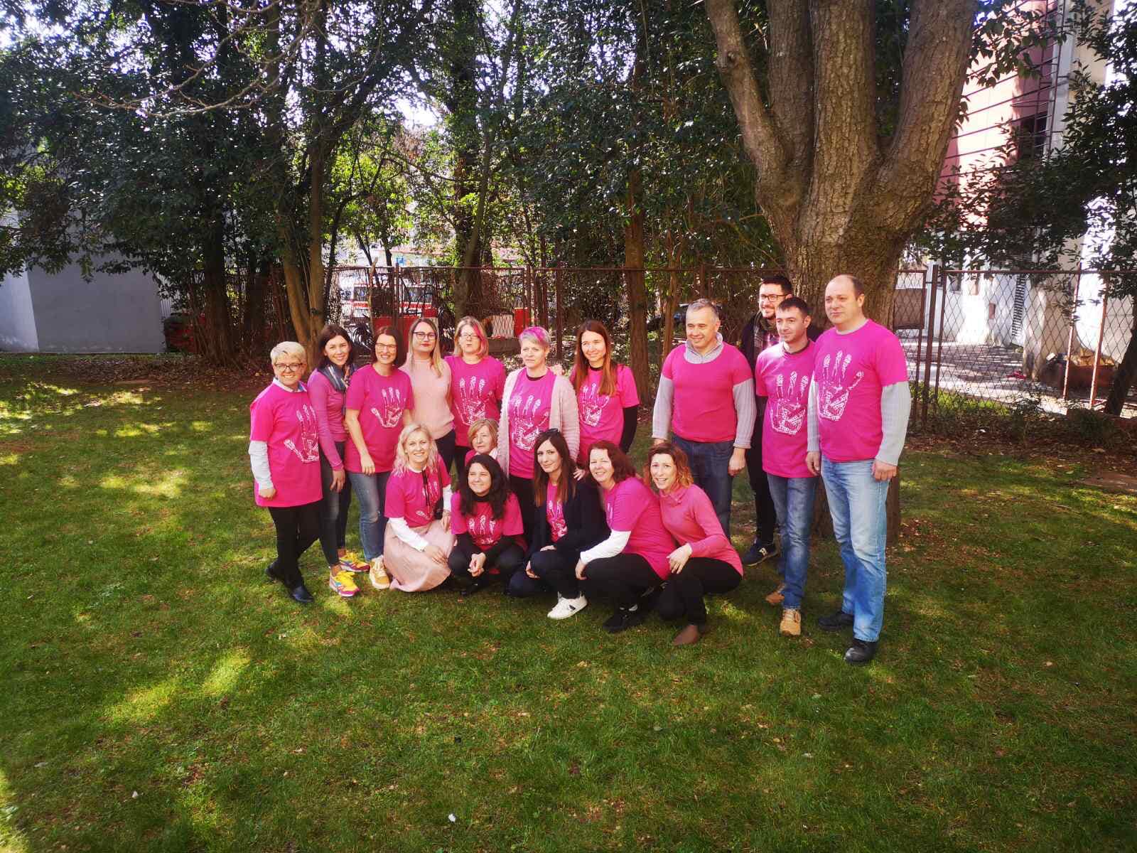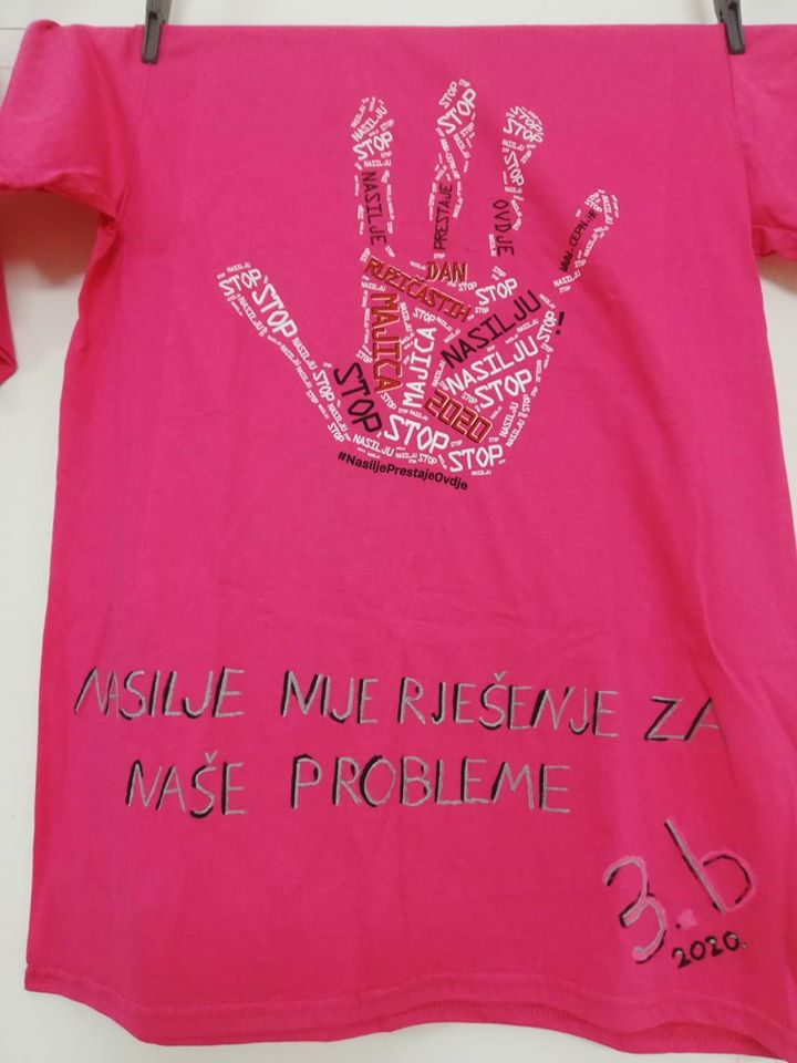 I ove smo, kao i prethodnih godina, zadnje srijede u mjesecu veljači obilježili "Dan ružičastih majica". U program prevencije vršnjačkog nasilja uključili smo sve učenike naše škole. Sa svojim su razrednicima i profesorima osmislili majice sa porukama koje smo izložili u našem hodniku škole. Družili se, pjevali i slali poruke. Pekli kolače i sudjelovali u akciji organiziranoj od strane Policijske postaje Rovinj i našeg Crvenog križa Rovinj.